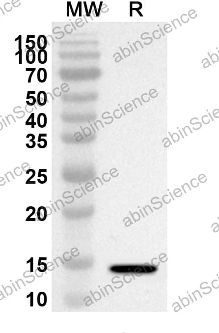Western blot analysis was performed using anti-CDw210a/IL10RA polyclonal antibody at 1ug/mL on recombinant CDw210a/IL10RA (Catalog No. HC614012). |
