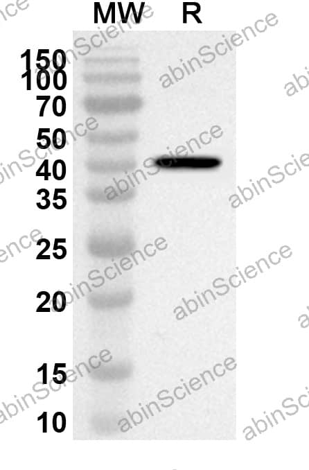 Western blot analysis was performed using anti-CD172a/SIRPA polyclonal antibody at 1ug/mL on recombinant CD172a/SIRPA (Catalog No. HX892012). |