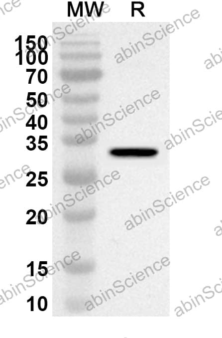Western blot analysis was performed using anti-SARS-CoV-2 ORF10 polyclonal antibody at 1ug/mL on recombinant SARS-CoV-2 ORF10 (Catalog No. VK615012). |