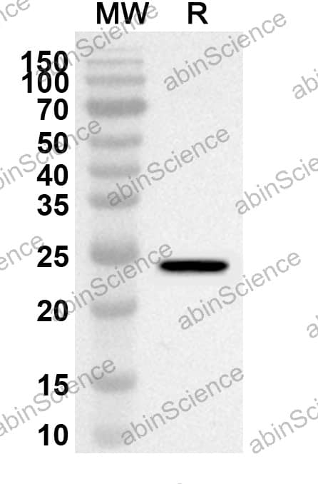 Western blot analysis was performed using anti-Human HLA-DQA1 polyclonal antibody at 1ug/mL on recombinant Human HLA-DQA1 (Catalog No. HM827012). |