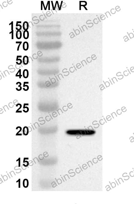 Western blot analysis was performed using anti-Mouse CCL3/MIP-1-alpha polyclonal antibody at 1ug/mL on recombinant Mouse CCL3/MIP-1-alpha (Catalog No. MY312012). |