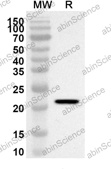 Western blot analysis was performed using anti-Mouse IL28A/IFNL2 polyclonal antibody at 1ug/mL on recombinant Mouse IL28A/IFNL2 (Catalog No. MV321012). |