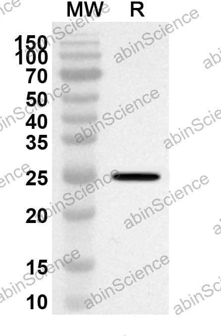 Western blot analysis was performed using anti-Mouse CD353/SLAMF8 polyclonal antibody at 1ug/mL on recombinant Mouse CD353/SLAMF8 (Catalog No. MV500012). |