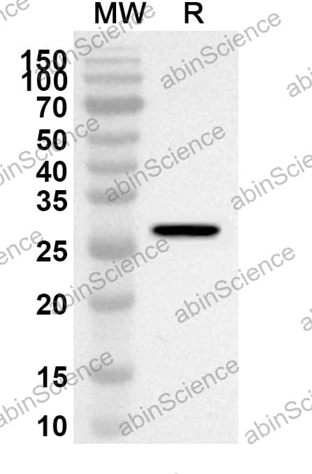 Western blot analysis was performed using anti-ASFV 9GL/pB119L/P14 polyclonal antibody at 1ug/mL on recombinant ASFV 9GL/pB119L/P14 (Catalog No. VK767012). |
