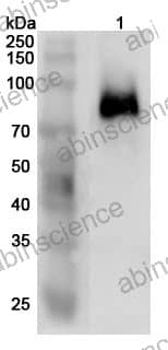 Western blot analysis was performed using anti-SELL polyclonal antibody at 1ug/mL on various samples. Lane 1: Mouse spleen lysate