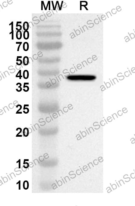 Western blot analysis was performed using anti-Chicken LDHA polyclonal antibody at 1ug/mL on recombinant Chicken LDHA (Catalog No. GF651012). |