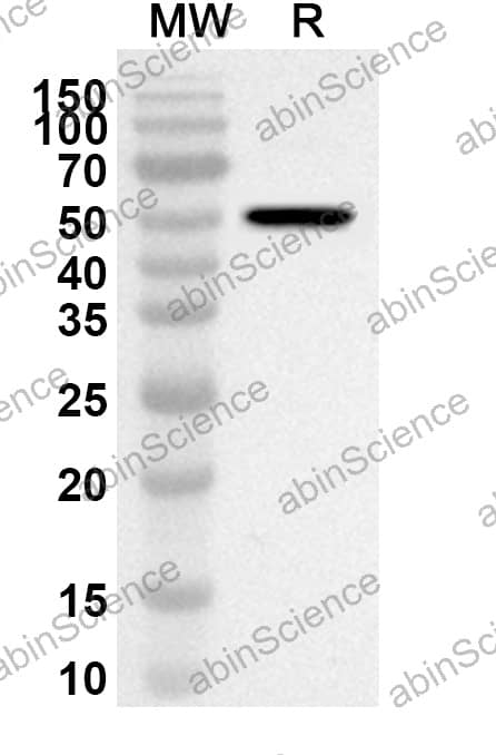 Western blot analysis was performed using anti-BCCV Gn/Glycoprotein N polyclonal antibody at 1ug/mL on recombinant BCCV Gn/Glycoprotein N (Catalog No. VK646022). |