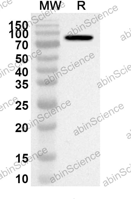 Western blot analysis was performed using anti-MARV NP/Nucleoprotein polyclonal antibody at 1ug/mL on recombinant MARV NP/Nucleoprotein (Catalog No. VK660012). |