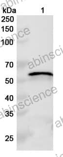 Western blot analysis was performed using anti-TRX1 polyclonal antibody at 1ug/mL on various samples. Lane 1: recombinant HSV-1/HHV-1 TRX1/UL38 (Catalog No: VK751012)