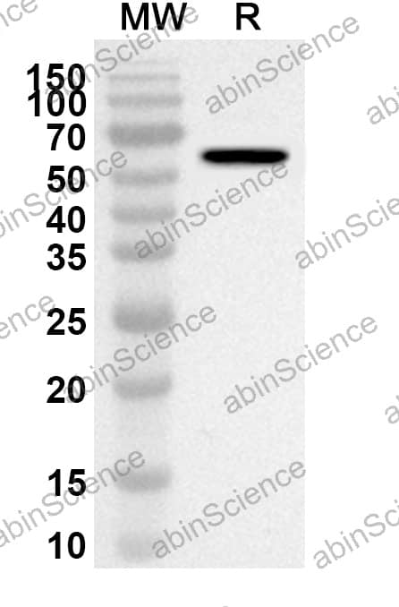 Western blot analysis was performed using anti-NSP5/3CL-PRO/M Pro polyclonal antibody at 1ug/mL on recombinant NSP5/3CL-PRO/M Pro (Catalog No. VK635022). |