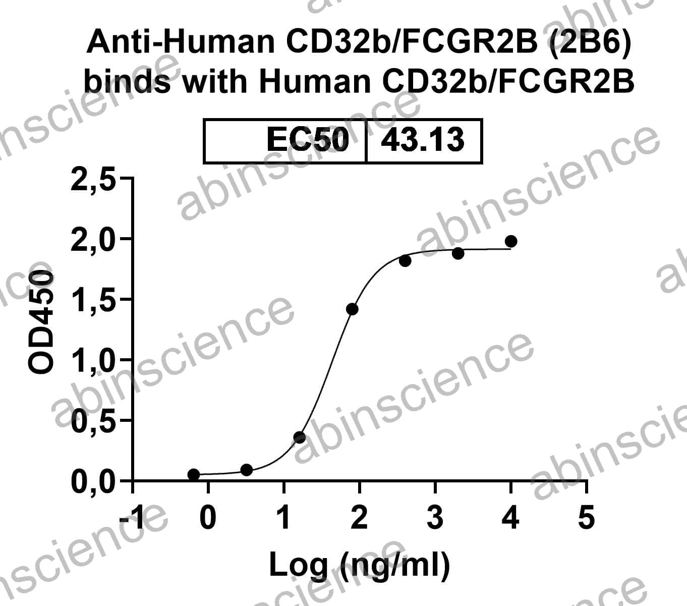 Detects Recombinant Human CD32b/FCGR2B Protein, C-His (Cat No.: HB103011) in indirect ELISA. |