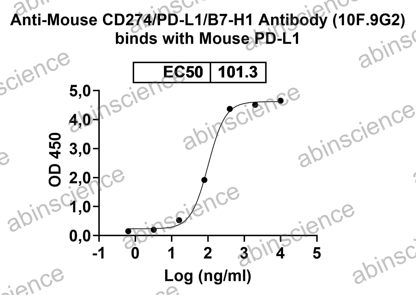 Detects Recombinant Mouse CD274/PD-L1/B7-H1 Protein (Cat No.: MV974011) in indirect ELISA. |
