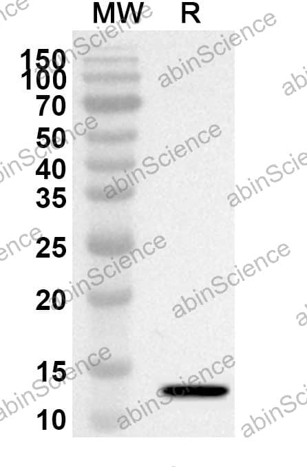 Western blot analysis was performed using anti-CCL24/Eotaxin-2/MPIF-2 polyclonal antibody at 1ug/mL on recombinant CCL24/Eotaxin-2/MPIF-2 (Catalog No. HT048012). |