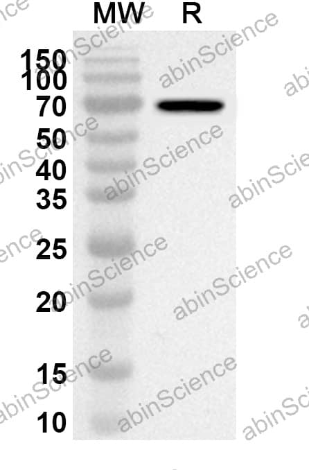 Western blot analysis was performed using anti-CD284/TLR4 polyclonal antibody at 1ug/mL on recombinant CD284/TLR4 (Catalog No. HT205012). |