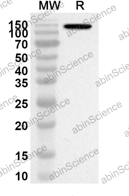 Western blot analysis was performed using anti-CD11c/ITGAX polyclonal antibody at 1ug/mL on recombinant CD11c/ITGAX (Catalog No. HB666012). |