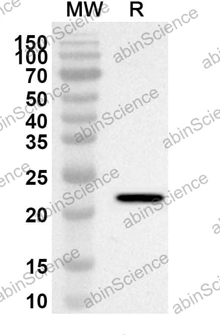 Western blot analysis was performed using anti-FGF7 polyclonal antibody at 1ug/mL on recombinant FGF7 (Catalog No. HB627012). |